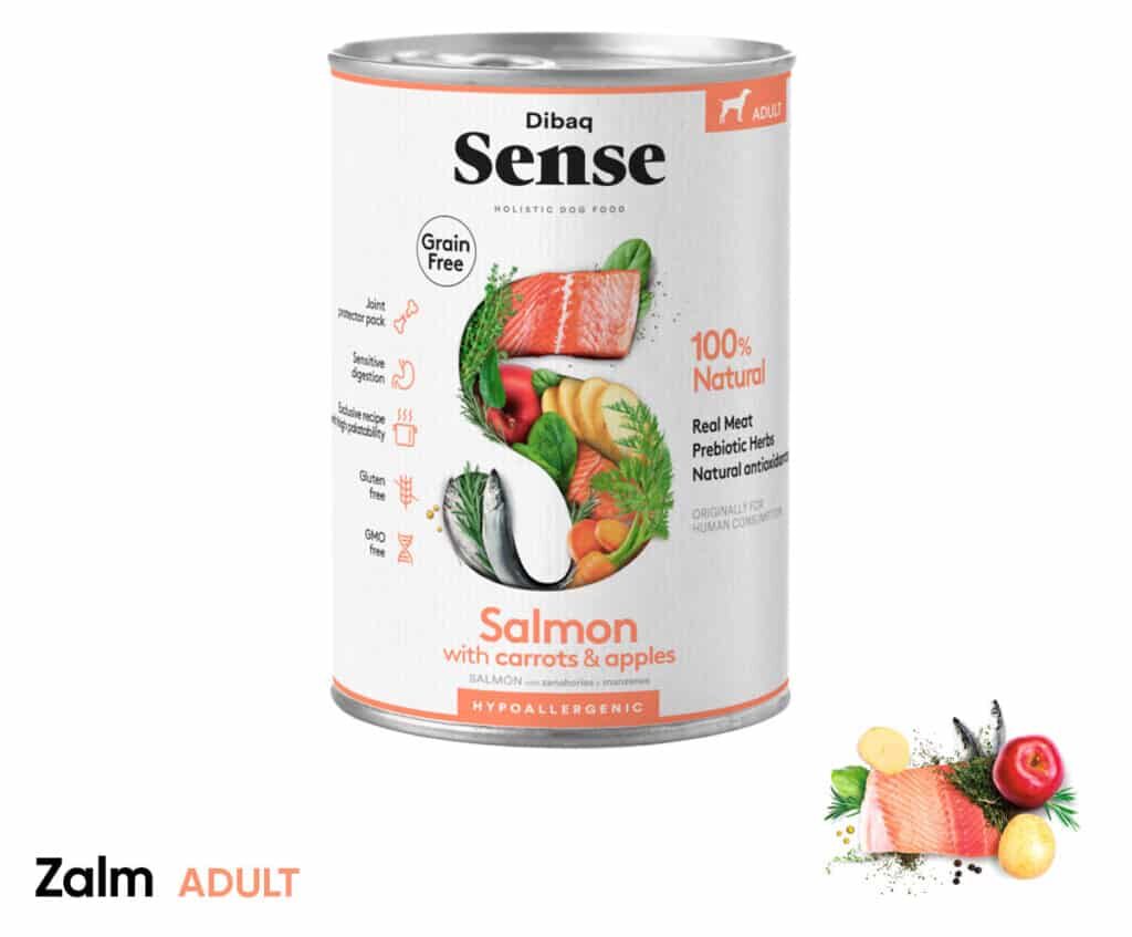 Frischer Fisch 73 % (frischer Lachs 40 %, frischer Hering 33 %), Kartoffeln, frisches Obst und Gemüse 4 % (Spinat, Karotten und Äpfel), 1 % Lachsöl (Quelle von Omega-3- und -6-Fettsäuren), 0,5 % Gelenkschutzpaket (Chondroitinsulfat, Glucosaminsulfat und MSM), Mineralstoffe, aromatische Pflanzen mit natürlichen Antioxidantien 0,02 % (Rosmarin, Thymian und Oregano).